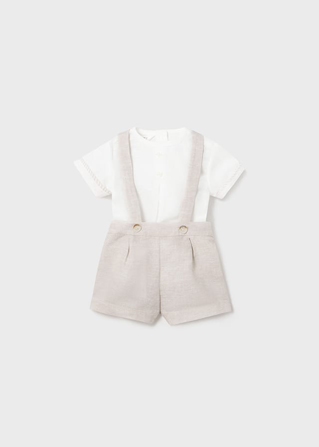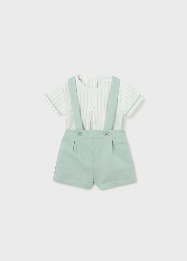 Completo bermuda con bretelle + camicia mezza manica collo coreano Neonato – Mayoral New Born
