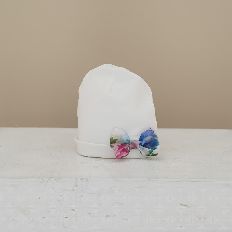 Cuffia nascita fiocco fiori Neonata – Ninnaoh