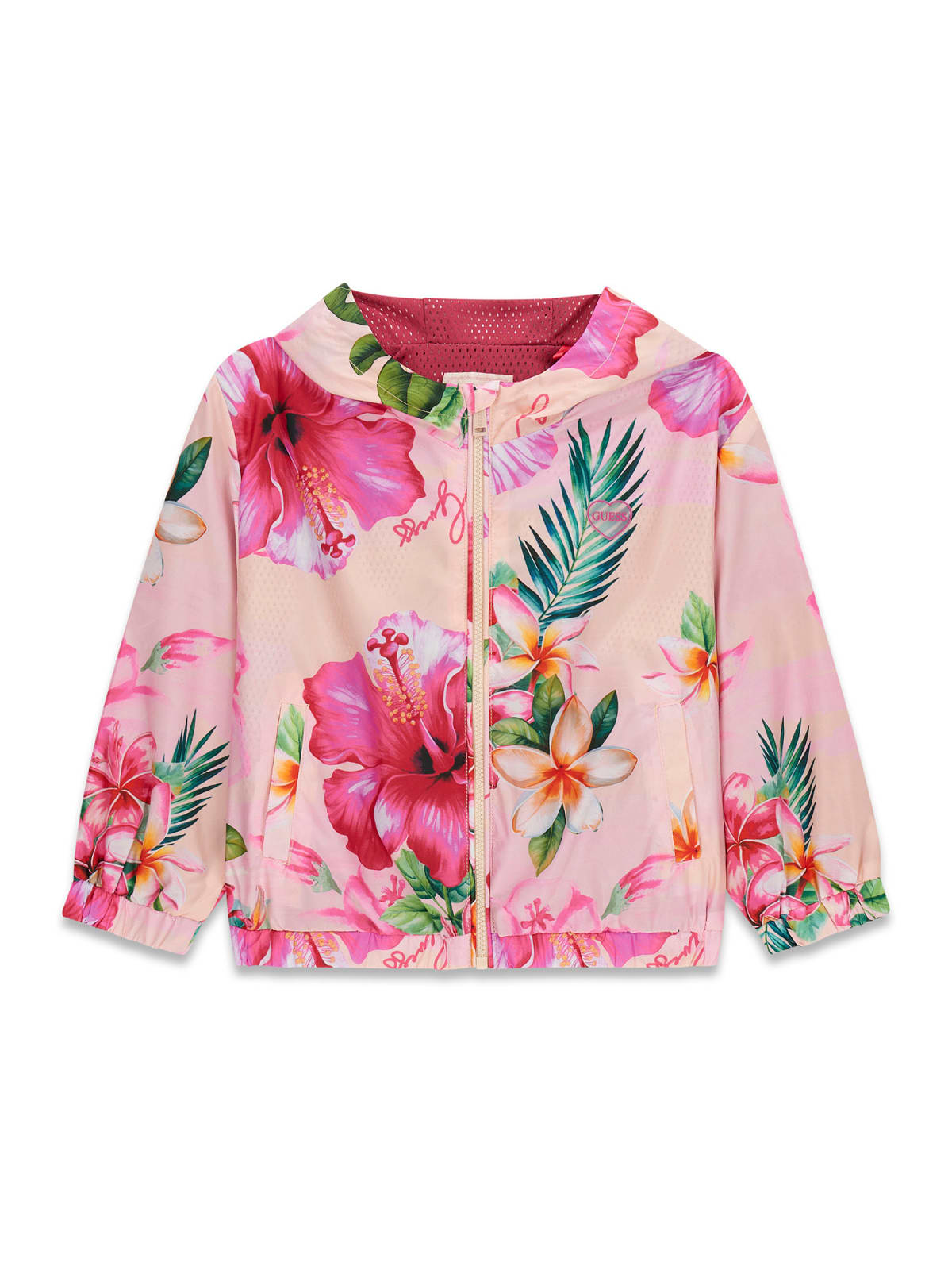 Giubbino antivento zip e cappuccio fiori Bambina – Guess